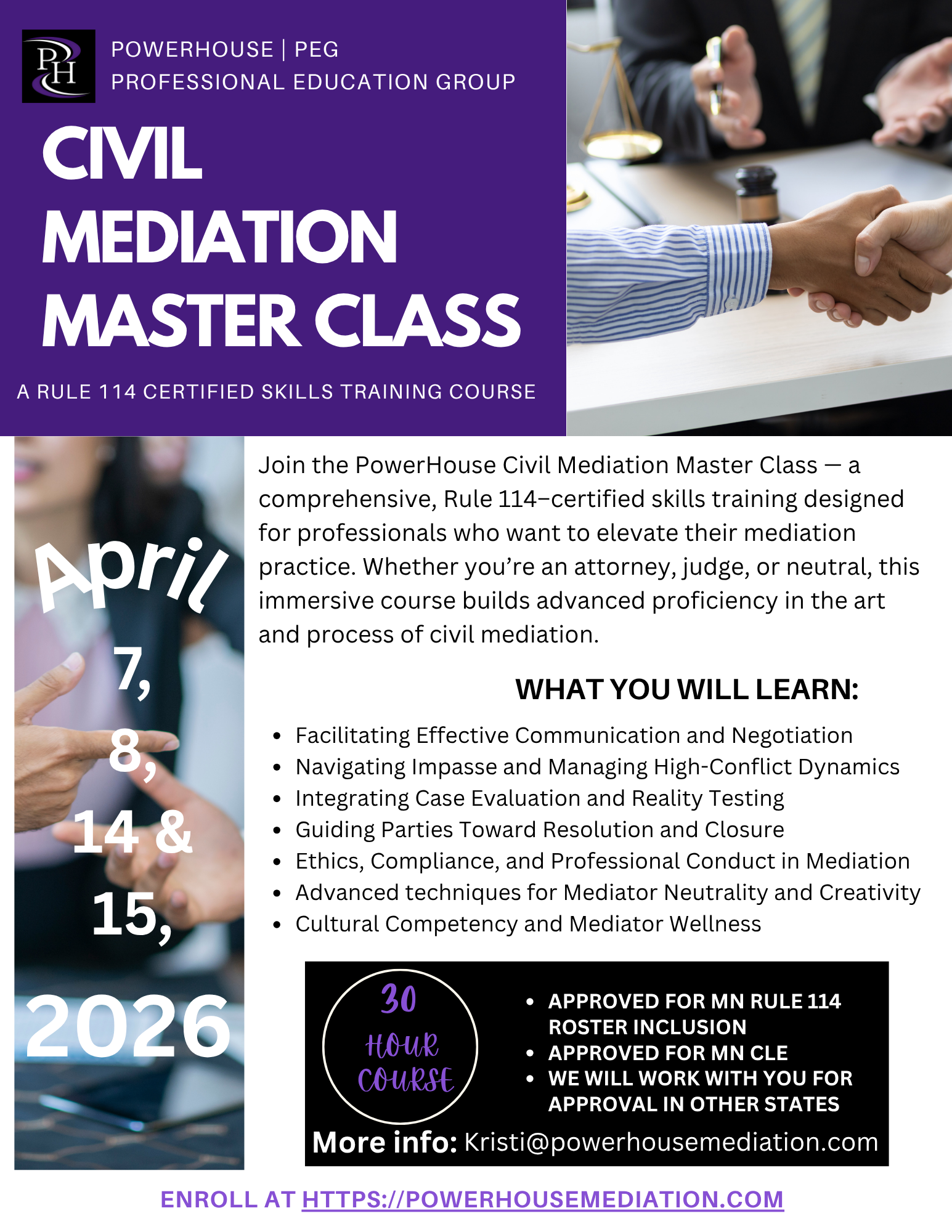 Civil Mediation - Certified Skills Training - April 7,8, 14 and 15, 2026