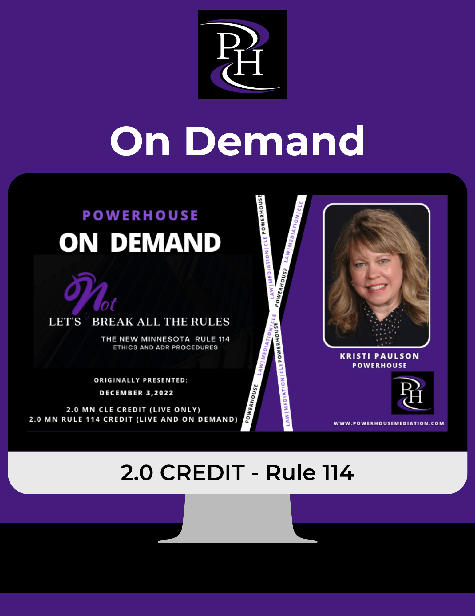 On Demand: Let's Not Break All the Rules: The New Minnesota Rule 114 - Ethics and ADR Procedures (Kristi Paulson)